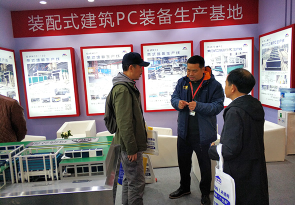 集約式立體運行PC平模生產(chǎn)線-瑪納李經(jīng)理向觀展嘉賓講解