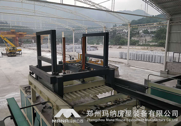 M30石膏墻板生產(chǎn)線主要由①三代不漏漿成組立模②液壓集體分離抽芯機(jī)③自動配料攪拌系統(tǒng)④自動布料機(jī)⑤推板、清模、涂油機(jī)⑥翻板、打包機(jī)⑦計(jì)算機(jī)控制系統(tǒng)⑧上壓成型機(jī)⑨自動圍擋刮面機(jī)等重要部分。