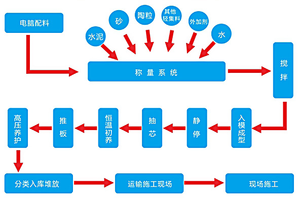 陶?招妮p質(zhì)隔墻板生產(chǎn)線主要包括:成組立模、抽芯機(jī)、布料上面成型系統(tǒng)、出板清模系統(tǒng)、行走系統(tǒng)、蒸壓釜等功能主機(jī)。