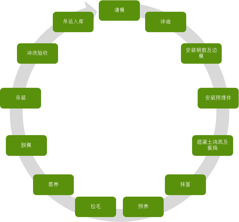 ⑬吊運(yùn)入庫:將檢查無誤的疊合板吊運(yùn)入庫,需要返修的疊合板調(diào)入暫存區(qū)進(jìn)行修補(bǔ)。