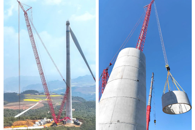 風(fēng)電混塔指的是風(fēng)力發(fā)電中的鋼混塔架,風(fēng)力發(fā)電機(jī)組的塔架有兩部分組成,上部分采用的是常規(guī)鋼制塔筒,下部分采用的是混凝土塔筒,中間使用過渡段相連接。而預(yù)制混塔中混凝土塔架部分是由預(yù)制混凝土構(gòu)件拼接而成的,吊裝后通過貫穿預(yù)應(yīng)力系統(tǒng),提高整體的抗彎能力。