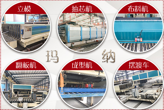 要選擇什么樣的工藝,那就要看生產(chǎn)GRC輕質(zhì)隔墻板用什么設(shè)備好,m09輕質(zhì)墻板生產(chǎn)線是在瑪納研制的機(jī)動(dòng)成組立模墻板成型工藝的基礎(chǔ)上,經(jīng)過(guò)技術(shù)升級(jí)創(chuàng)新,研制出的新型輕質(zhì)墻板生產(chǎn)線成型工藝,該生產(chǎn)線主要設(shè)備組成如下: