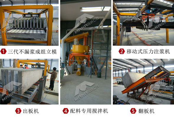 M08復(fù)合夾芯保溫墻板生產(chǎn)線主要設(shè)備:第三代不漏漿成組立模/壓力注漿機/配料專用攪拌機/出板機/翻板機