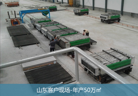 3.產(chǎn)能高用工少,標準生產(chǎn)線產(chǎn)能年產(chǎn)50萬㎡(3000mmX600mm),單組直接操作工人約需8-10人,工作時間8-12小時(參考)。