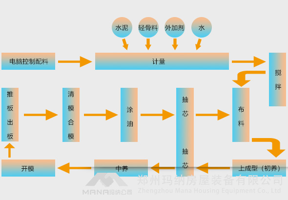 M09輕質(zhì)墻板生產(chǎn)線整體技術(shù)采用MANA公司自主創(chuàng)新研制開發(fā)的新型成組立模技術(shù)裝備(系原始技術(shù)創(chuàng)新開發(fā),獲得MN級技術(shù)鑒定),采用立模法機(jī)組流水工藝生產(chǎn),使用瑪納多項MN技術(shù)做支撐,擁有完全的自主知識產(chǎn)權(quán),主要滿足用戶大規(guī)劃、高品質(zhì)、高度機(jī)械自動化的產(chǎn)品需要,是目前國內(nèi)外最先進(jìn)的成組立模法生產(chǎn)墻材的裝備。