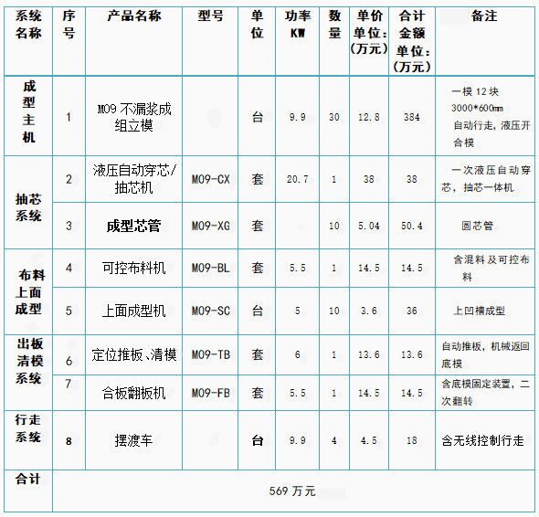 M09輕質(zhì)墻板自動化生產(chǎn)線-年產(chǎn)50萬㎡-報價表